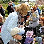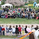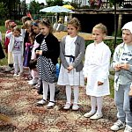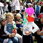 W blasku wiosennego słońca dzieci z grup: Krasnale, Biedronki, Motylki, Zające i Smerfy z Przedszkola Miejskiego nr 19 w Lesznie zaprezentowały program artystyczny dla ukochanych mam i ojców.