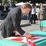19 Samodzielny Oddział Geograficzny stacjonujący w jednostce wojskowej w Lesznie dostał dziś sztandar, ufundowany przez mieszkańców regionu leszczyńskiego i miasta Leszna.