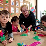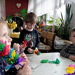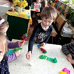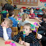 W ramach programu Współpraca Międzypokoleniowa co pewien czas Przedszkole Miejskie nr 18 w Lesznie odwiedzają członkinie Uniwersytetu Trzeciego Wieku. Tym razem były to panie należące do sekcji plastycznej i rękodzieła artystycznego w Klubie OBOK Miejskiego Ośrodka Kultury.