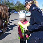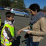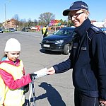 Przy stadionie Alfreda Smoczyka policja zatrzymywała dziś kierowców aut. Nie, nie po to, aby ich karać. Dzieci ze Szkoły Podstawowej nr 1 w Lesznie wręczały zmotoryzowanym ulotki z życzeniami wielkanocnymi i jednocześnie przypominające o bezpiecznym poruszaniu się po drogach.