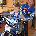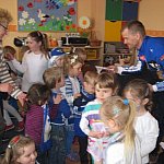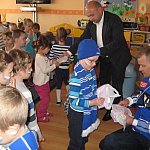 W środę od rana w Przedszkolu Publicznym w Dąbczu trwały poszukiwania wielkanocnych koszyczków, które zniknęły w tajemniczy sposób. Emocje już sięgały zenitu, kiedy do przedszkolaków, wystrojonych w biało-niebieskie barwy Fogo Unii Leszno, przyjechali Damian Baliński i Kornel Malcherek.