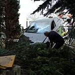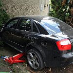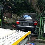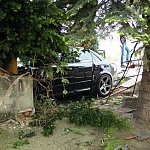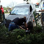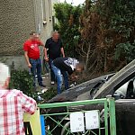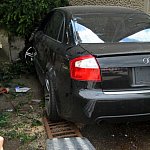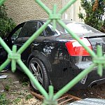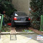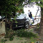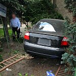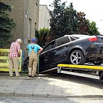 27-letni kierowca staranował ogrodzenie i zatrzymał się na budynku. Twierdzi, że stracił panowanie nad kierownicą, gdy skręcał z ul. Szybowników w Kochanowskiego na leszczyńskim Zatorzu.
