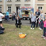Honker z napędem na cztery koła wyposażony w wieżyczkę strzelniczą z zamontowanym na niej karabinem maszynowym zaparkował pod kościołem św. Jana Chrzciciela w Lesznie. Był jednym z elementów uatrakcyjniających doroczną parafiadę. I cieszył się wielką popularnością wśród najmłodszych.