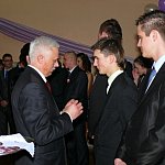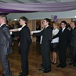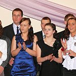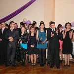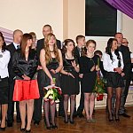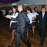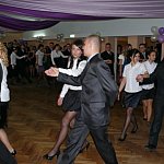Uczniowie Zespołu Szkół Rolniczo-Budowlanych w Lesznie, osoby towarzyszące oraz grono pedagogiczne spędzają sobotni wieczór na sali bankietowej leszczyńskiego Metalplastu. Do tańca przygrywa im grupa Paradise.