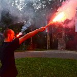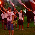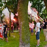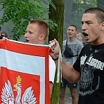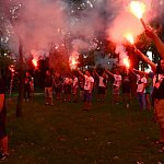 Pod Pomnikiem Żołnierzy Wyklętych przy ul. Poniatowskiego w Lesznie kibice Unii Leszno zorganizowali dzisiaj manifestację z okazji 70 rocznicy wybuchu Powstania Warszawskiego.