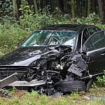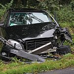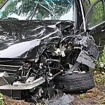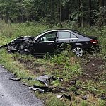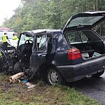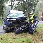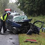 Droga z Leszna do Góry jest zablokowana. Doszło na niej do wypadku z udziałem dwóch samochodów, które zderzyły się czołowo.