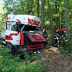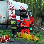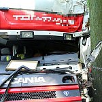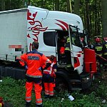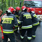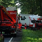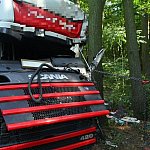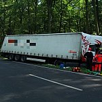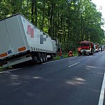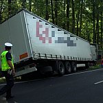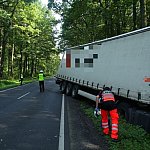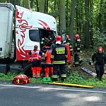 Do wypadku doszło przed godz. 13 na drodze nr 12 z Leszna do Kąkolewa, kilkaset metrów przed torami kolejowymi. Tir wpadł do rowu, kierowcę z auta wyciągali strażacy.