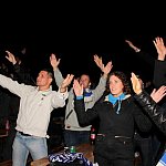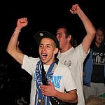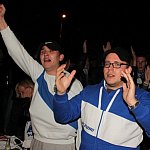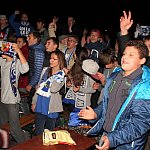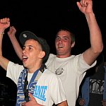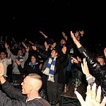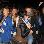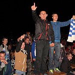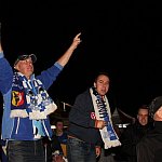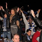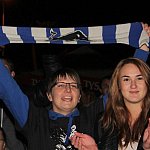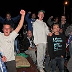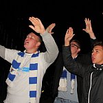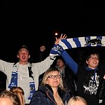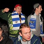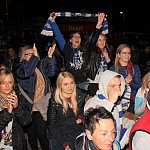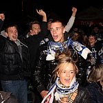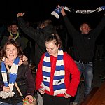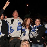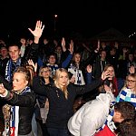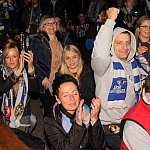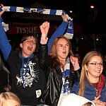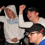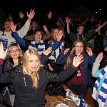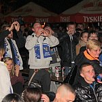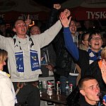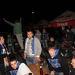 Sporo osób zdecydowało się oglądać mecz Unii Leszno z Unią Tarnów w strefie kibica pod stadionem. Relację z Tarnowa kibice śledzili na telebimie, a kiedy okazało się, że Byki zdobyły już tyle punktów, że są w finale DMP wybychła wielka radość.