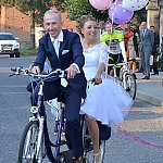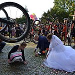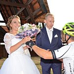 Spora grupa leszczyńskich kolarzy podjechała w piątkowe popołudnie pod osiecki klasztor, aby utworzyć szpaler, kiedy ze świątyni wychodzili już jako małżeństwo Kasia i Marek Konwa.