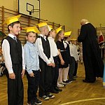 104 uczniów klas pierwszych złożyło ślubowanie w Szkole Podstawowej nr 5 w Lesznie, Uroczystość odbyła się w Dniu Edukacji Narodowej.