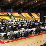 Ponad sto osób zasiadło do wigilijnej wieczerzy w Hali Trapez w Lesznie. Wigilie dla bezdomnych i samotnych są organizowane w mieście od 22 lat.
