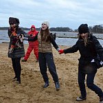 Bardzo wesoło było dzisiaj na plaży w Osiecznej. Mażoretki zatańczyły razem z morsami na plaży.