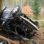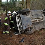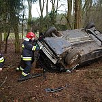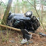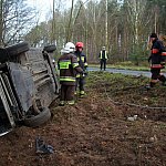 32-letnia kobieta ucierpiała w wyniku dachowania w lesie. Do wypadku doszło w pobliżu styku gmin Poniec i Rydzyna.