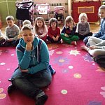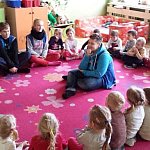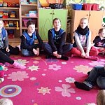 Absolwenci Przedszkola w Rydzynie przyszli w odwiedziny do młodszych koleżanek i kolegów.