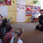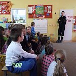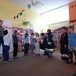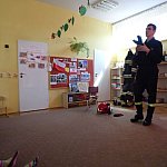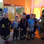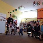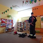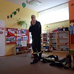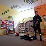 Dzieci z Miejskiego Przedszkola nr 21 z Oddziałami Integracyjnymi i Oddziałami Specjalnymi im. Przyjaciół Kubusia Puchatka spotkały się ze strażakiem - Szymonem Kurpiszem z Komendy Miejskiej Państwowej Straży Pożarnej.