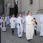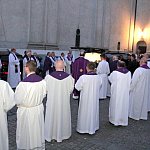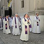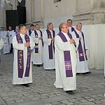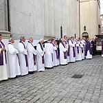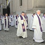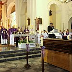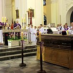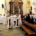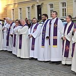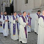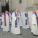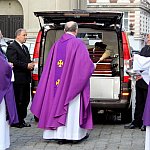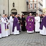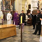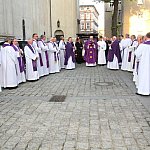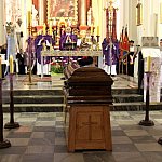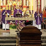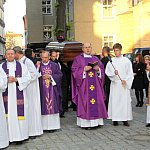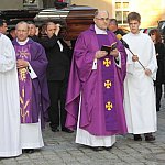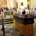W piątek wieczorem w leszczyńskiej farze odbyło się ostatnie pożegnanie jej wieloletniego proboszcza księdza Konrada Kaczmarka. Trumnę z ciałem zmarłego prałata uroczyście wprowadzono do świątyni.