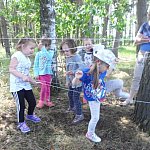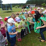 Jedną z atrakcji obchodów Dnia Dziecka Przedszkolaków z Przedszkola Miejskiego nr 15 w Lesznie było pokonanie stacji ekologicznych na polanie w Dąbczu oraz zdobycie odznaki "Przyjaciel Przyrody".