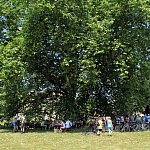 Najpierw jazda w skwarze, później odpoczynek w cieniu rozłożystego drzewa. Przy rydzyńskim zamku zakończył się Rajd Rowerowy "Rowerem przez Leszno-Region".