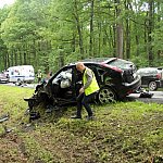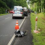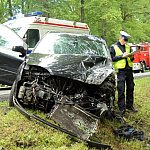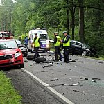 Do karambolu doszło przed godz. 17 na drodze krajowej nr 12 na odcinku pomiędzy przejazdem kolejowym a Lesznem. Ze wstępnych ustaleń wynika, że dwie osoby są poszkodowane.