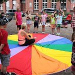 Do wspaniałej wakacyjnej zabawy nie są potrzebne góry, morze, jeziora czy wybujała infrastruktura. Przekonują o tym dzieci uczestniczące w cyklu spotkań "Piknik pod chmurką" organizowanym w Lesznie przez Fundację StrefaPL. Tym razem zabawa miała miejsce na Placu Metziga w cieniu Dębu Bolka.