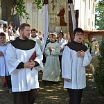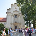 Przed rozpoczęciem Sumy Odpustowej na dziedzińcu Klasztoru Ojców Franciszkanow odslonięto tablicę upamiętniającą 16 kobiet zmarłych podczas okupacji w więzieniu, jakie mieściło się w klasztorze.