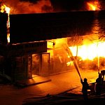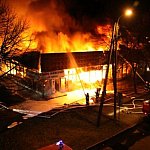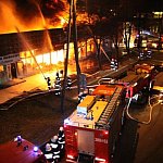 Salon meblowy i fryzjerski, sklepy jubilerski, a także zakład usług fotograficznych spłonęły w wielkim pożarze, jaki wybuchł wczoraj wieczorem przy ul. Racławickiej w Lesznie. Tak dużego pożaru nie było w mieście od kilku lat. Gasiło go 74 strażaków.