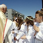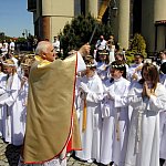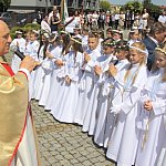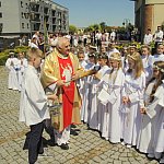 W upalne majowe przedpołudnie, 81 dzieci z parafii Św. Maksymiliana Marii Kolbego w Lesznie-Gronowo, przystąpiło do I Komunii Świętej.