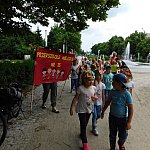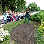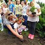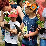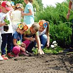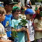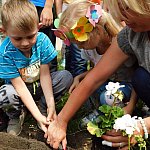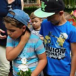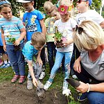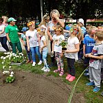 Dzieci z Przedszkola Miejskiego numer 15 w Lesznie sadziły białe pelargonie. Pomagali im pracownicy Miejskiego Zakładu Zieleni i prezydent miasta.