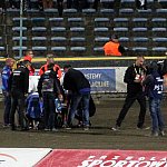 Po czternastu biegach niedzielnego meczu półfinałowego w Lesznie Fogo Unia prowadziła z Falubazem różnicą 12 punktów. W ostatniej odsłonie upadł jednak Piotr Pawlicki i został wykluczony z powtórki. Wykorzystali to goście i zmniejszyli rozmiary porażki do 10 "oczek".