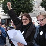 Beata, niestety, ten rząd obalą kobiety. Nasze ciała, nasza sprawa. Myślę, czuję, decyduję. Tak brzmiały niektóre z haseł głoszonych w Czarny Wtorek na Rynku w Lesznie. Manifestacja zgromadziła kilkadziesiąt kobiet, do których dołączyło kilkunastu mężczyzn.