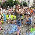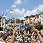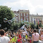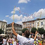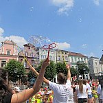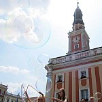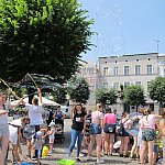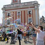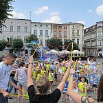 Miliony baniek mydlanych poszybowały w niebo przy leszczyńskim ratuszu. Do wspólnej zabawy zaprosiło...
