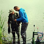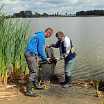 Nad zalewem w Rydzynie zorganizowano zawody wędkarskie. Ryby brały, ale zapewniamy, po złowieniu wszystkie zostały wypuszczone do wody.