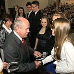 Uczniowie siedmiu klas IV Liceum Ogólnokształcącego im. Karola Kurpińskiego w Lesznie spotkali się w piątek w auli PWSZ, by uroczyście pożegnać się ze swoją szkołą.