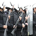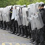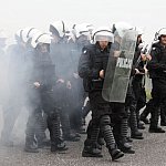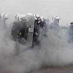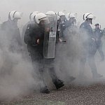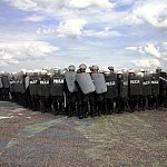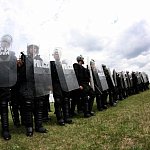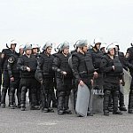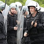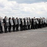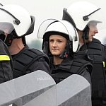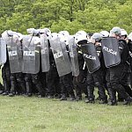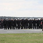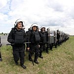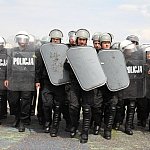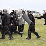 Policjanci z Leszna i ościennych powiatów oraz strażnicy miejscy szlifowali dziś na leszczyńskim lotnisku umiejętności związane z zabezpieczaniem imprez masowych. Ćwiczenia przeprowadzono pod kątem Euro 2012, w sumie wzięło w nich udział 100 osób.