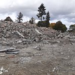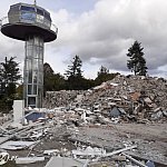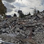 Z dawnego budynku hotelowego na obecnym Lotnisku Leszno została już tylko wieża kontroli lotów. Wyburzono wszystkie pozostałe elementy, w tym salę sportową. Zdjęcia z października 2024 roku.