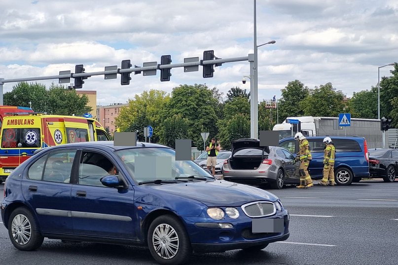 w środę, 21 sierpnia przed godziną 15 na skrzyżowaniu Alei Konstytucji 3 Maja i Alei Jana Pawła II w Lesznie, na wysokości Hali Trapez, zderzyły się 3 samochody osobowe, którymi łącznie podróżowało 5 osób, w tym jedna nieletnia.