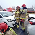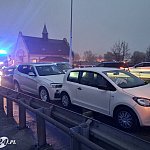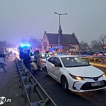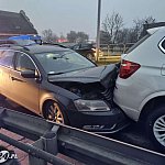 We wtorek 25 listopada około godz. 15.45 na wiadukcie Grota-Roweckiego w Lesznie zderzyły się cztery auta osobowe: skoda, BMW, volkswagen i toyota-taksówka. Do szpitala została zabrana 40-letnia kobieta ze skody.