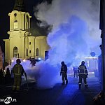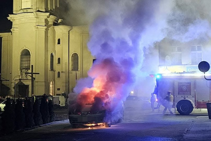 Auto stało przy kościele. Spaliło się doszczętnie. Prawdopodobną przyczyną pożaru było zwarcie instalacji elektrycznej. Straty oszacowano na około 20 tysięcy złotych. Pożar gasili strażacy z Leszna i OSP Rydzyna.