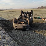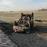 W czwartek, 26 lutego 2026 roku na trasie Wilkowice - Mórkowo dachował samochód marki Nissan. Kierowca, 66-letni mężczyzna trafił do szpitala.