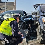 Do wypadku doszło w sobotę 7 marca około godz. 10.30 na zjeździe z wiaduktu Grota-Roweckiego na Al. Jana Pawła II w Lesznie.