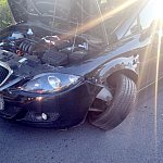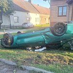 Zderzyły się BMW, seat leon i nissan micra. Pierwszy z tych samochodów dachował.