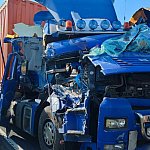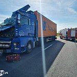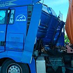 Mandatem w wysokości 1100 złotych został ukarany kierowca ciągnika siodłowego MAN, który zagapił się i na krajowej 12 najechał na tył stojącego w korku DAF-a.
