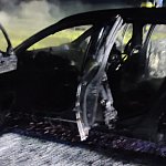Auto spaliło się doszczętnie, przyczyną pożaru było prawdopodobnie zwarcie instalacji elektrycznej w komorze silnika.
