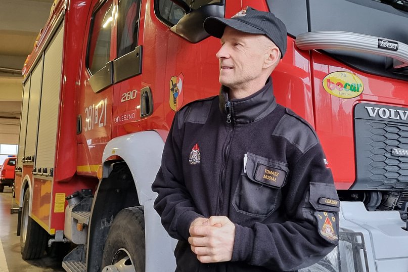 Tomasz Musiał, strażak Komendy Miejskiej PSP w Lesznie rano w środę, 25 lutego 2026 roku zszedł ze służby po raz ostatni. Przeszedł na emeryturę. Ze strażą pożarną się nie rozstaje. Jest bowiem prezesem OSP Dąbcze.