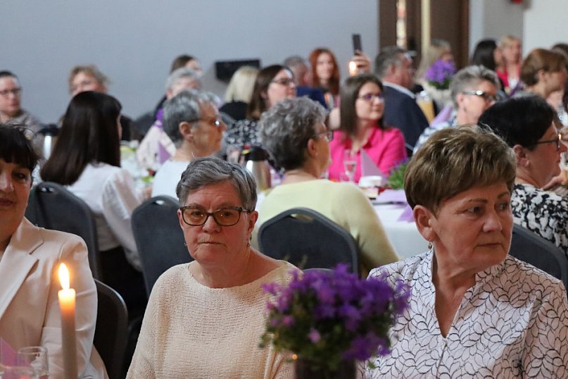 Panie z gminy Osieczna przyjęły zaproszenie wójta Sławomira Kosmalskiego i Dzień Kobiet 2026 spędziły w Centrum Kultury i Bibliotece. Atrakcją spotkania był występ zespołu Colorado, smaczne torty, a każda z uczestniczek otrzymała czerwoną różę.