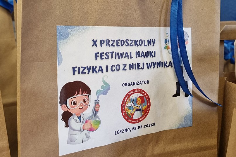 25 marca 2026 roku w Przedszkolu Miejskim nr 8 w Lesznie odbył się X Międzyprzedszkolny Festiwalu Nauki pod hasłem "Fizyka - i co z tego wynika?".