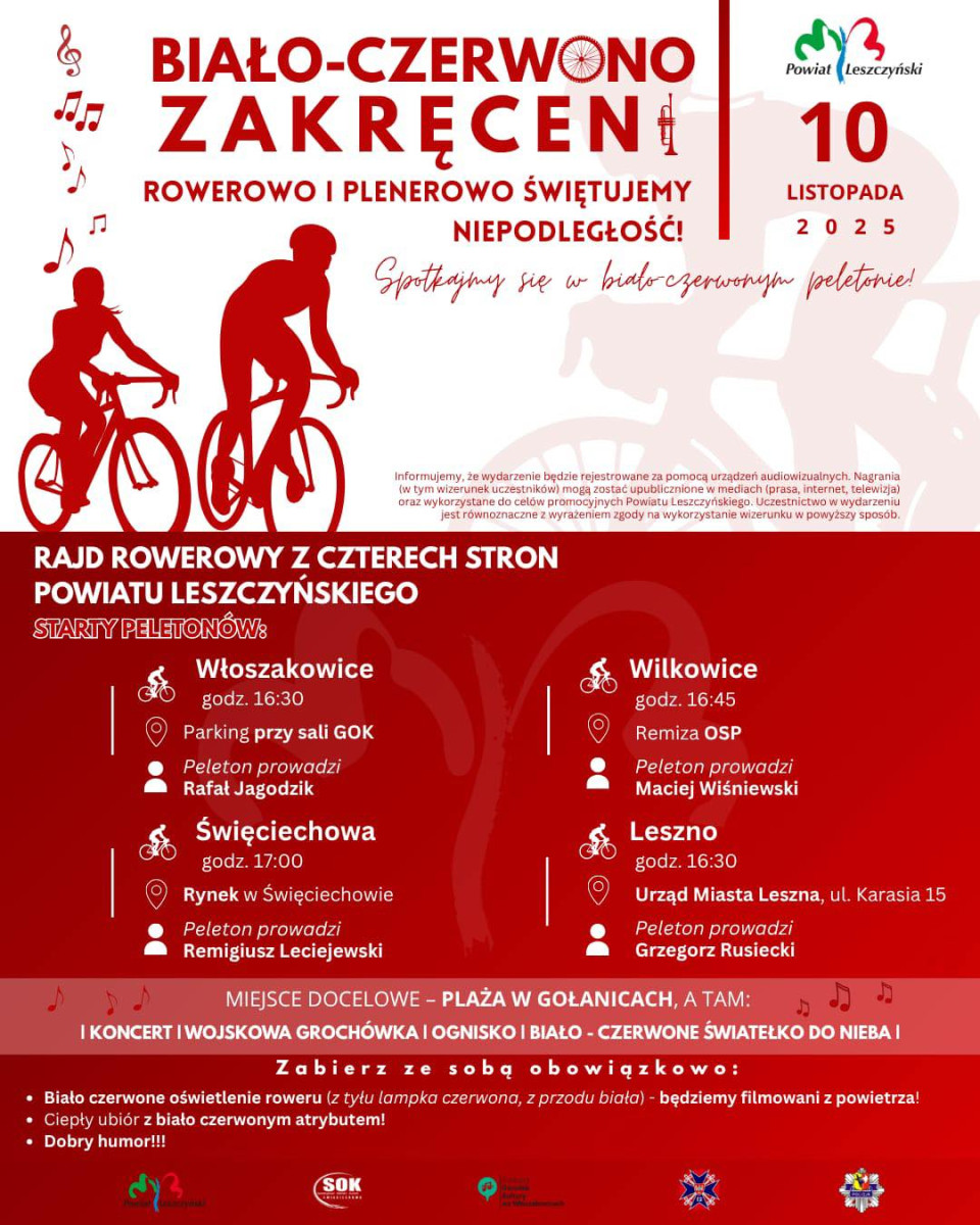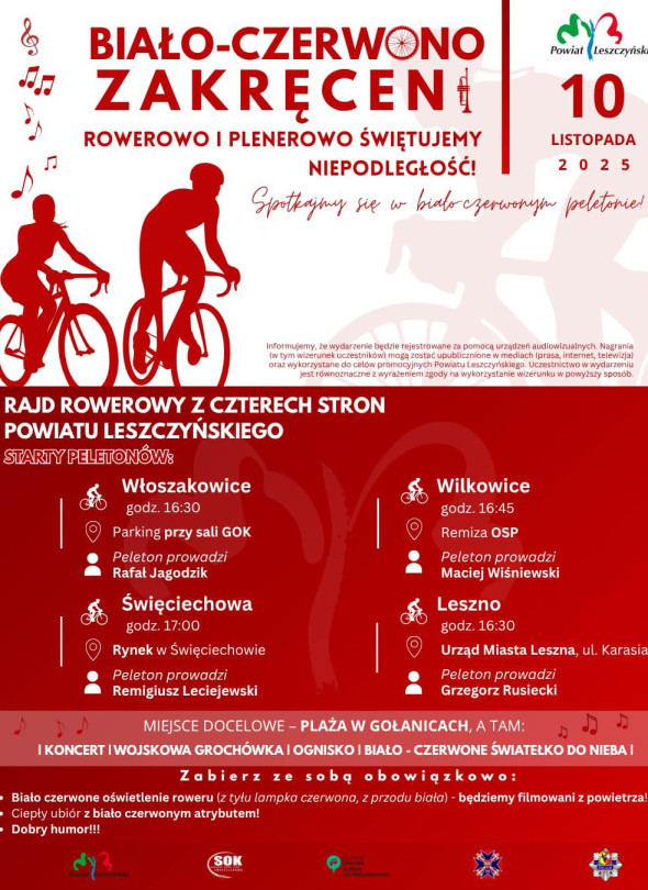 BIAŁO-CZERWONO ZAKRĘCENI - rowerowe i plenerowe, niepowtarzalne i wyjątkowe świętowanie odzyskania Niepodległości - na rowerach, przy muzyce, z ogniskiem, grochówką i biało-czerwonym światełkiem do nieba.
