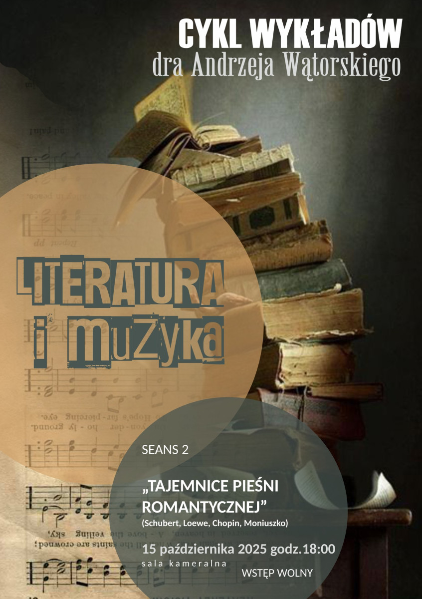 Dom Kultury w Rawiczu w środę, 15 października o godz.18 zaprasza na wykład dra Andrzeja Wątorskiego z cyklu "Literatura i muzyka". Omawiane będą tajemnice pieśni romantycznej - Schubert, Loewe, Chopin, Moniuszko. Wstęp wolny.