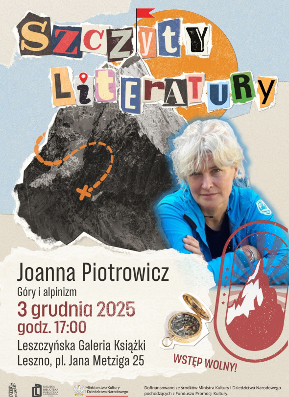 Jak to jest stanąć na szczycie świata i spojrzeć z wysokości na wszystko, co zna się z map i książek? O tym opowie Joanna Piotrowicz – himalaistka, instruktorka wspinaczki skalnej i podróżniczka – podczas spotkania w ramach projektu Szczyty Literatury. W barwnej opowieści o Tatrach, Himalajach i kobietach w górach przybliży również kwestie bezpieczeństwa i ochrony górskiej przyrody.
