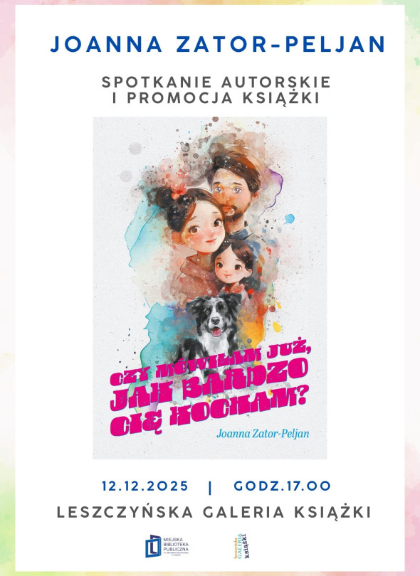 Zapraszamy na spotkanie autorskie z dr Joanną Zator-Peljan, połączone z promocją książki „Czy mówiłam już, jak bardzo cię kocham?”. Wydarzenie odbędzie się 12 grudnia 2025 roku o godz. 17:00 w Leszczyńskiej Galerii Książki przy pl. Jana Metziga 25. Wstęp wolny.
